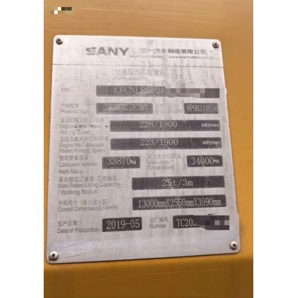 2019 SANY STC250T 25T Full Hydraulic Used Truck Crane